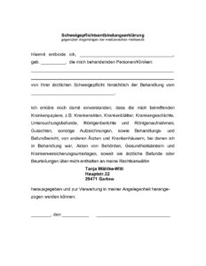 Schweigepflichtsentbindungserklärung von TanjaW | Feb. 9, 2026 | 0 Kommentare Kommentar absenden Antworten abbrechenDeine E-Mail-Adresse wird nicht veröffentlicht. Erforderliche Felder sind mit * markiertKommentar * Name * E-Mail * Website Meinen Namen, meine E-Mail-Adresse und meine Website in diesem Browser für die nächste Kommentierung speichern.